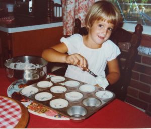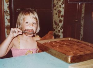 Always willing to help Mom in the kitchen when chocolate frosting was involved.