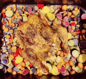 Make a lot! You don’t need to do anything to them. They are going to take on amazing flavor from the chicken in the roasting process.