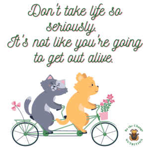 I am generally a fun and happy person who doesn’t take things quite as seriously as I used to: I am mellowing out in my old age. 🙂 I am more relaxed, caring and kinder to others as well as myself. I enjoy more of the foods that I used to consider off-limits. Funny how when you realize you can have anything you want you find you don’t want all the junk you thought you did. It took me many, many years to learn and accept that nutrition is by no means an exact science. And all those theories on the best way to eat, well they are just that– theories. Lightening up about food concerns and accepting the fact that there is no one right way to eat was extremely freeing.